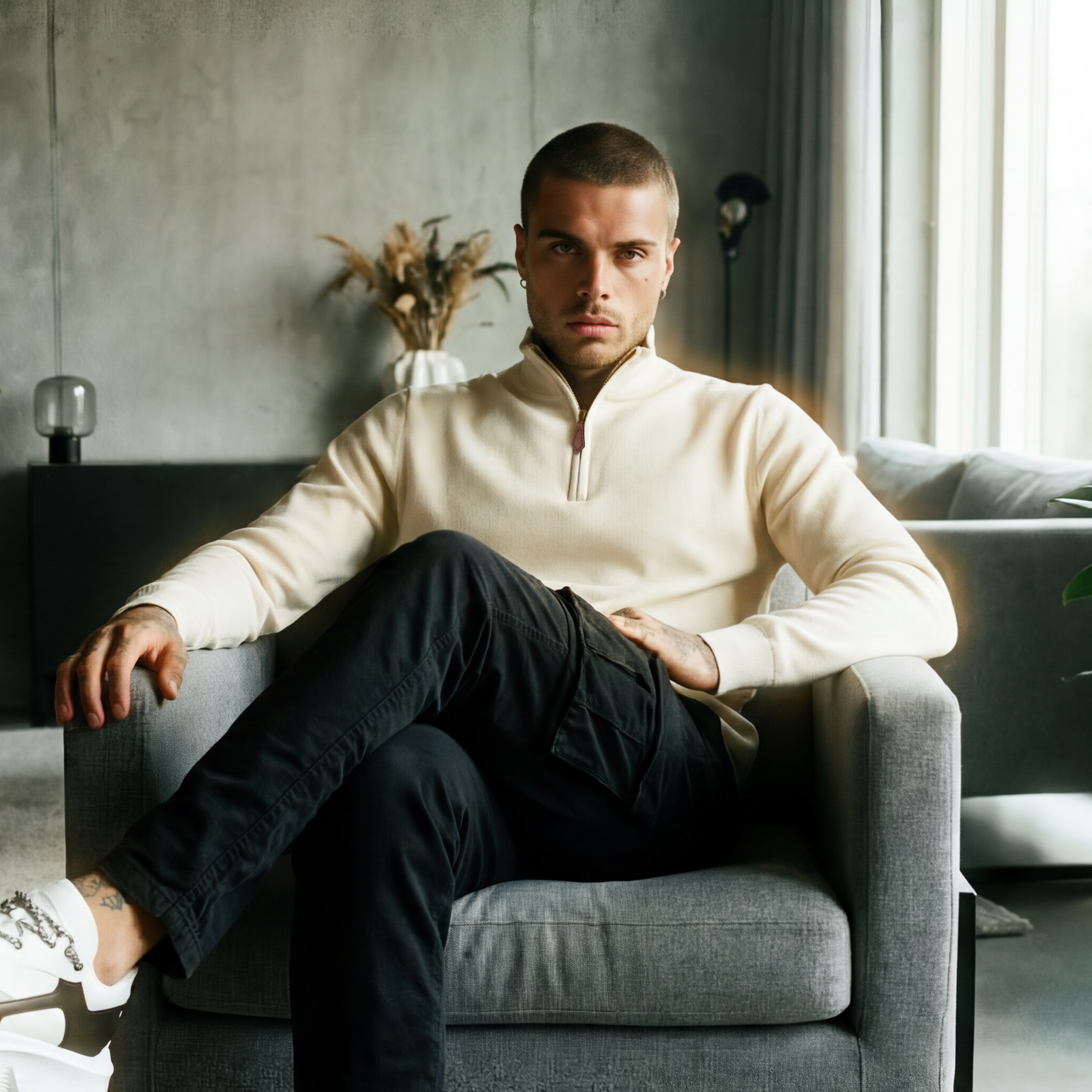 Ανδρική μπλούζα μακρυμάνικη Quarter-zip με πολύ μαλακή αίσθηση για ένα άνετο στυλ.
