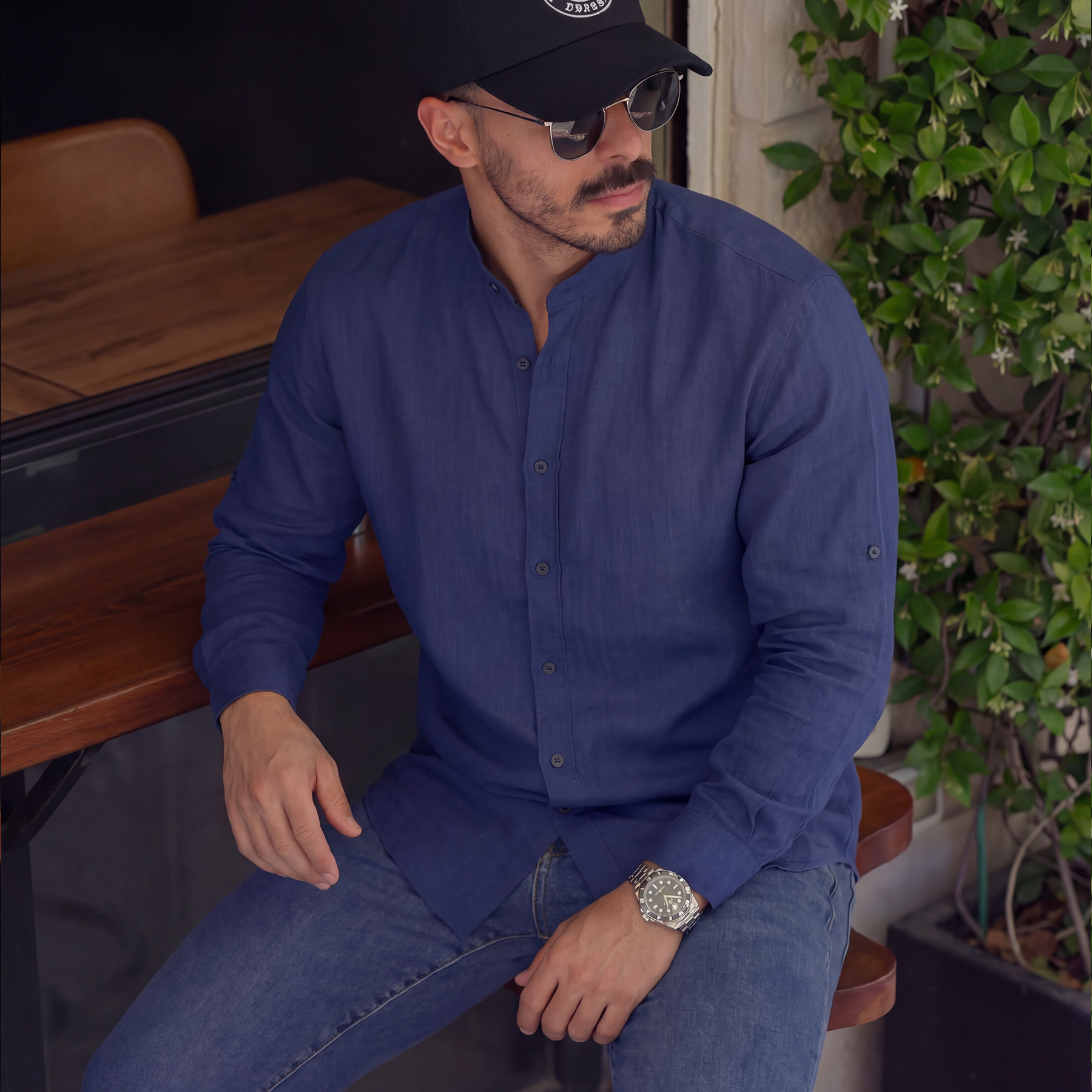 Μακρυμάνικo Λινό Πουκάμισο σε Κανονική Γραμμή