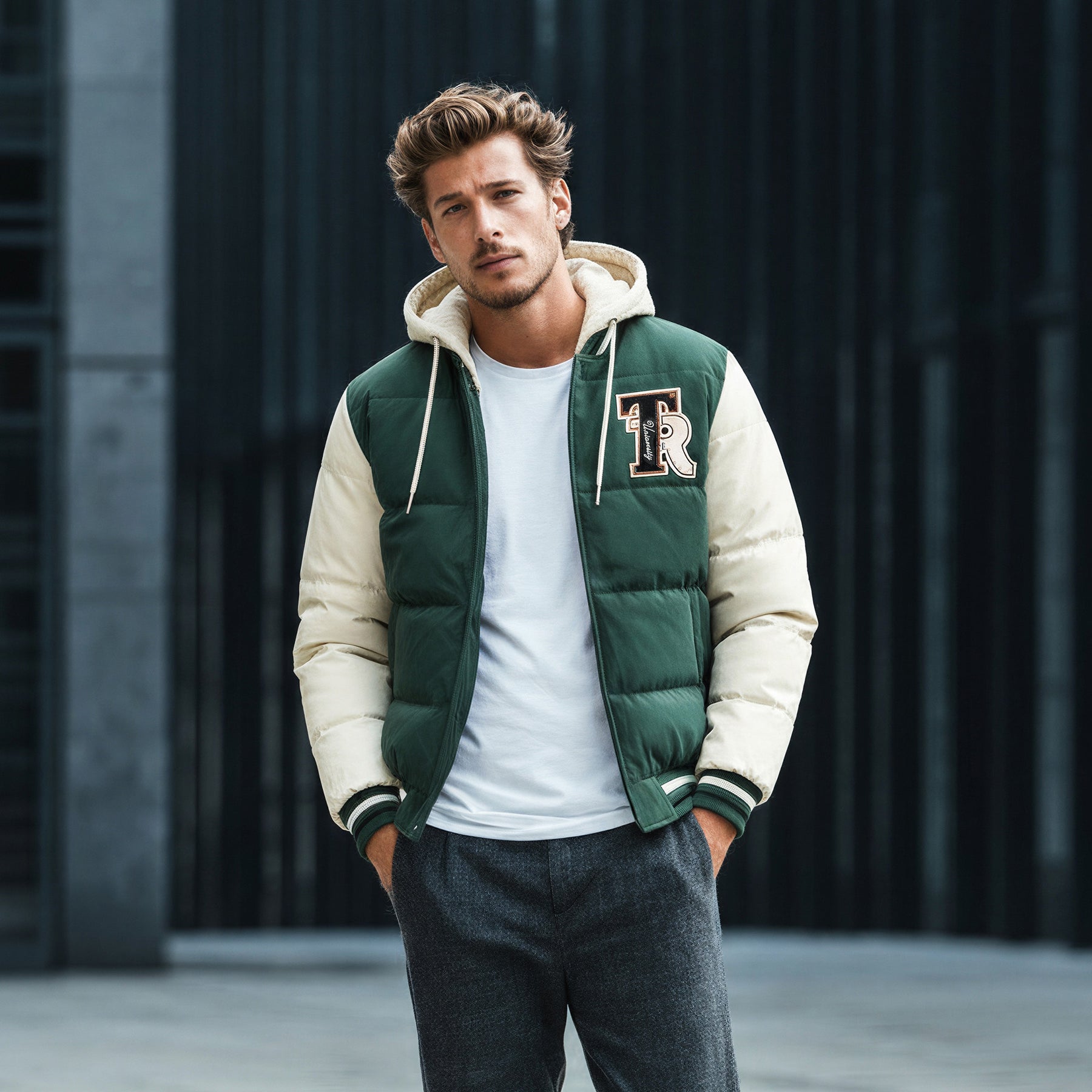Ανδρικό Μπουφάν Κολλεγιακό με Κουκούλα