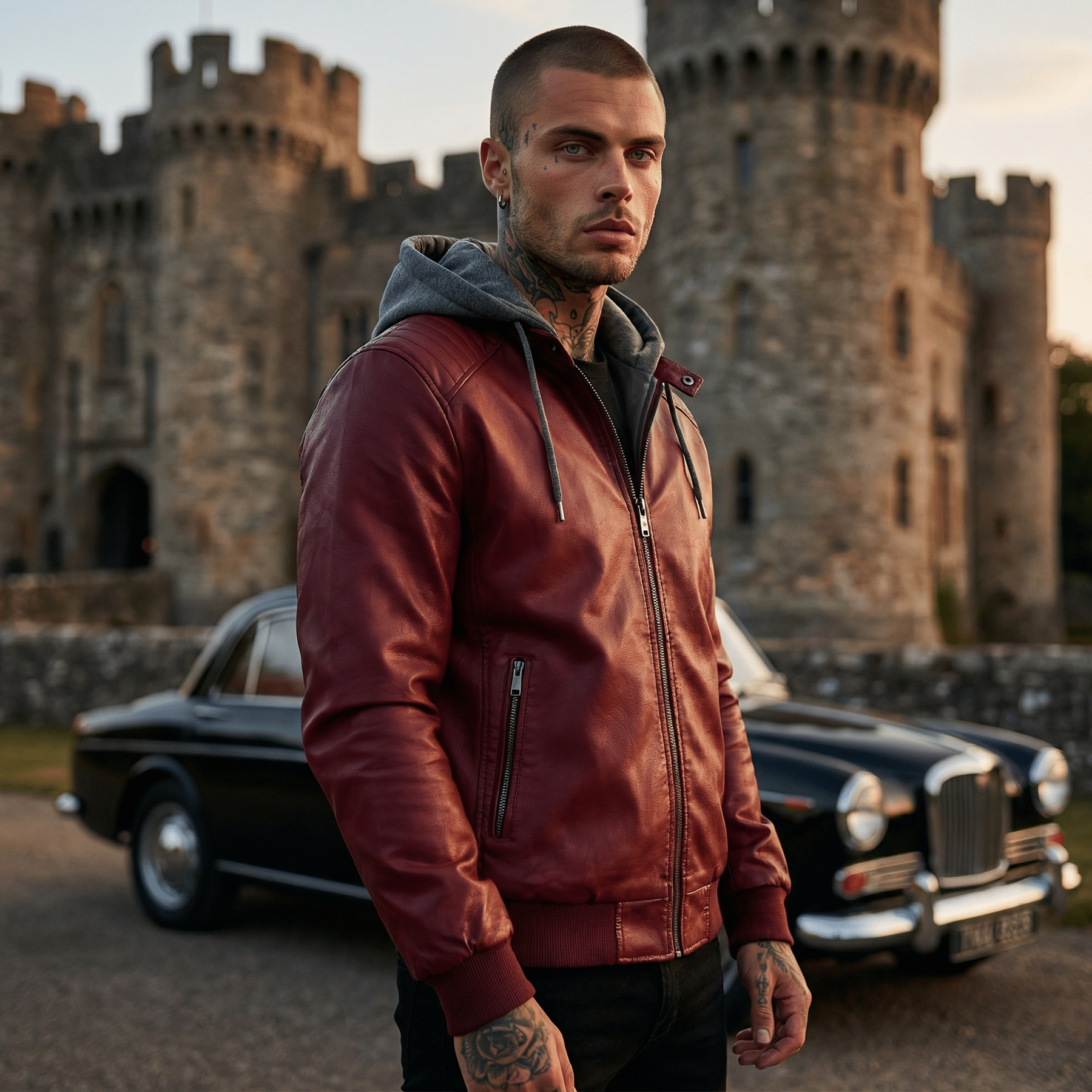 Ανδρικό Μπουφάν από Δερματίνη με Κουκούλα