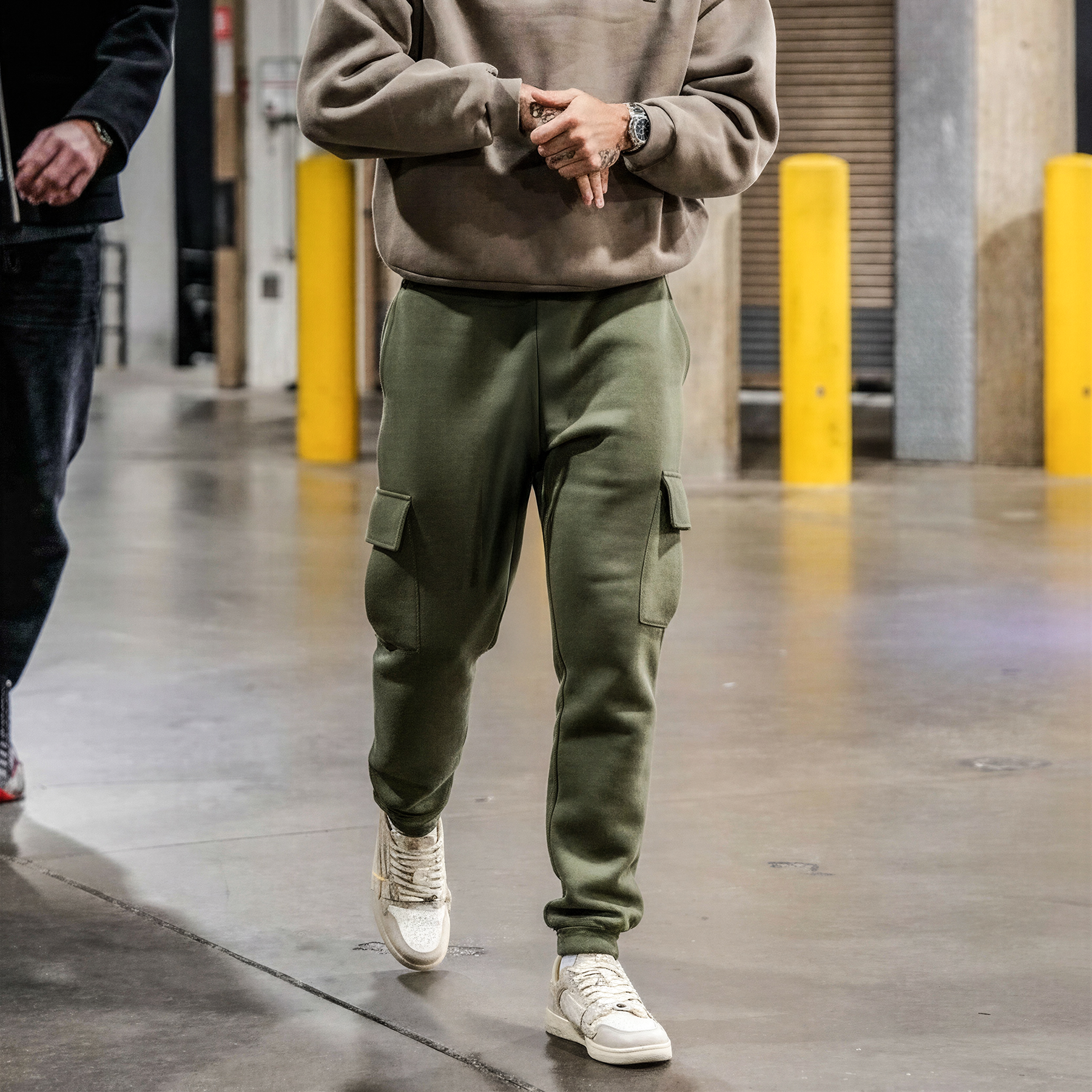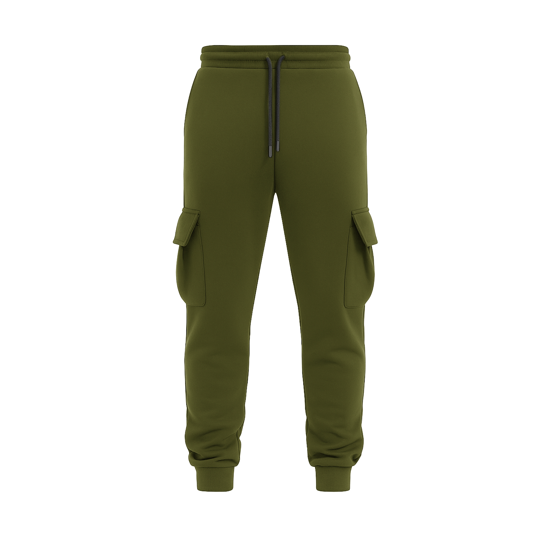 Ανδρικό παντελόνι φόρμας cargo από μαλακό ύφασμα με πλαϊνές τσέπες για casual εμφανίσεις και λάστιχο στους αστραγάλους.