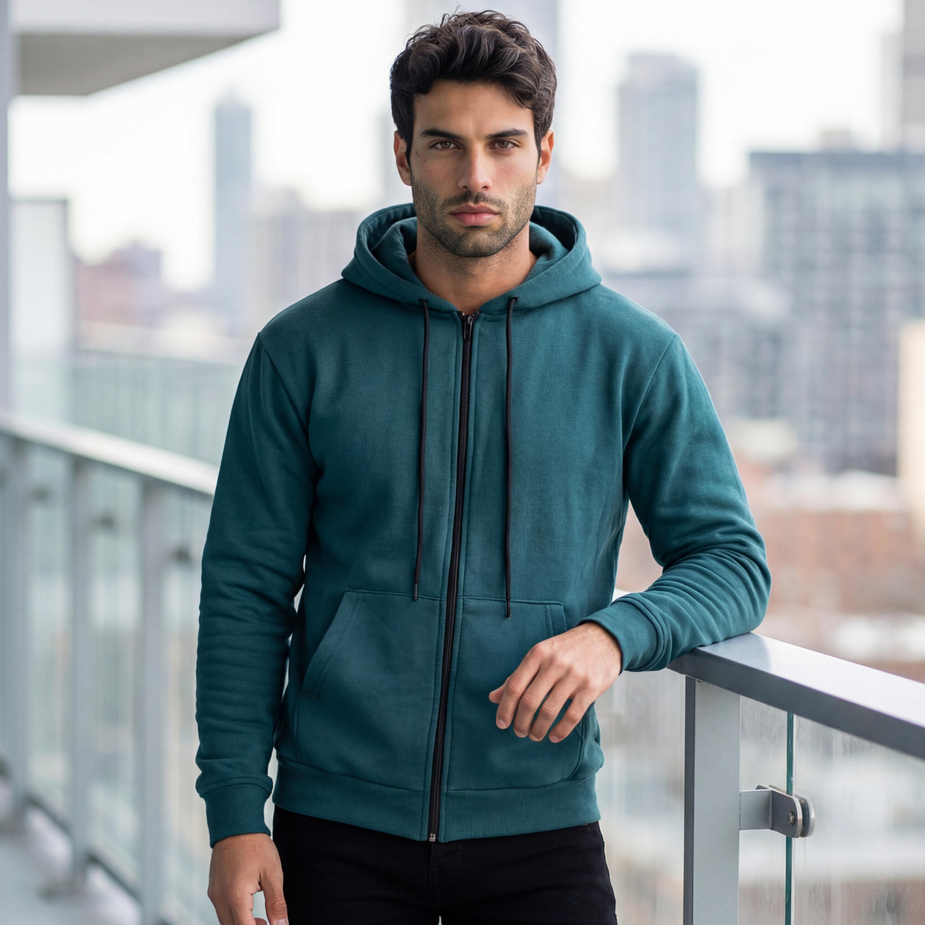 Ανδρική Ζακέτα με Κουκούλα Πετρόλ