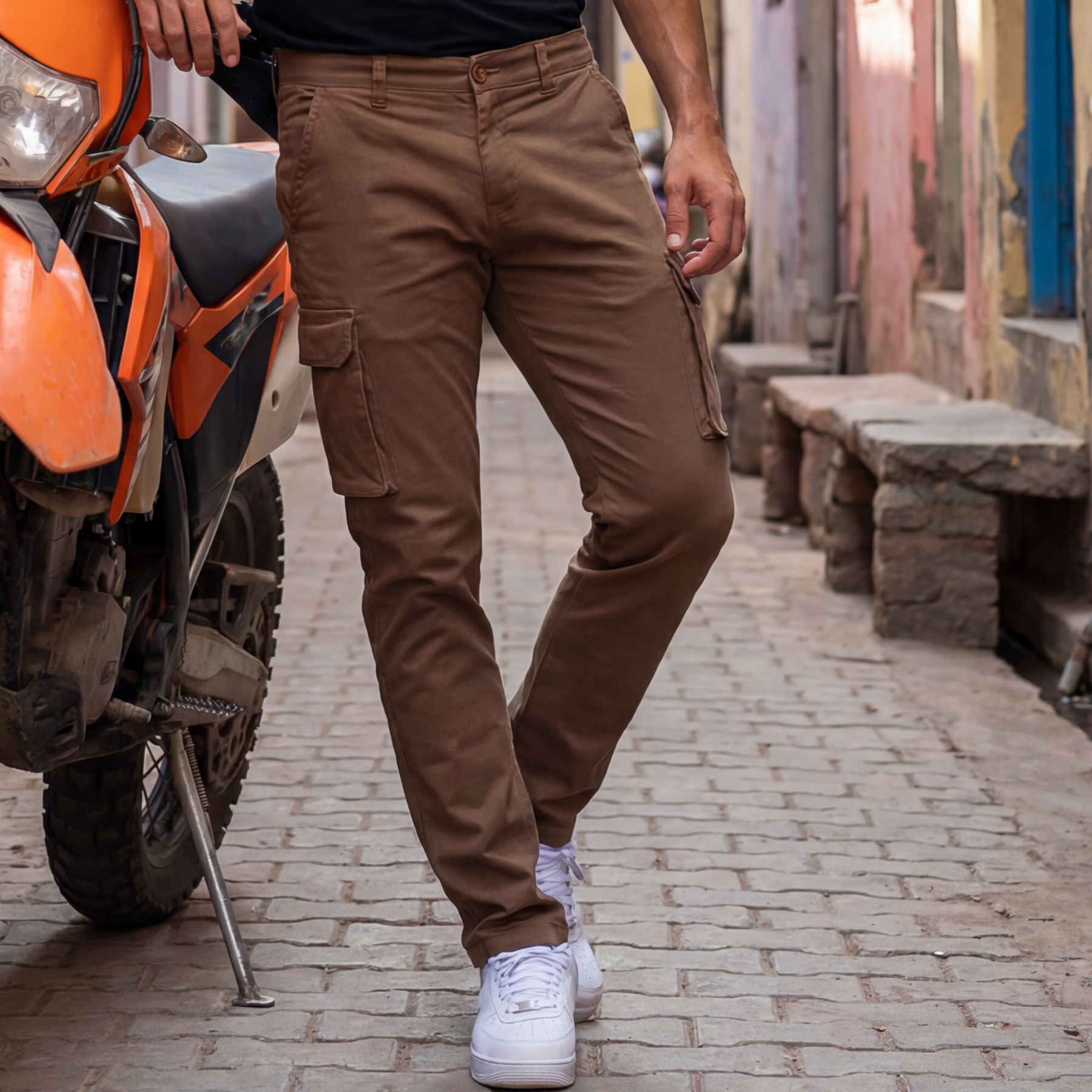 Ανδρικό παντελόνι cargo από μαλακό ύφασμα με πλαϊνές τσέπες για casual εμφανίσεις.