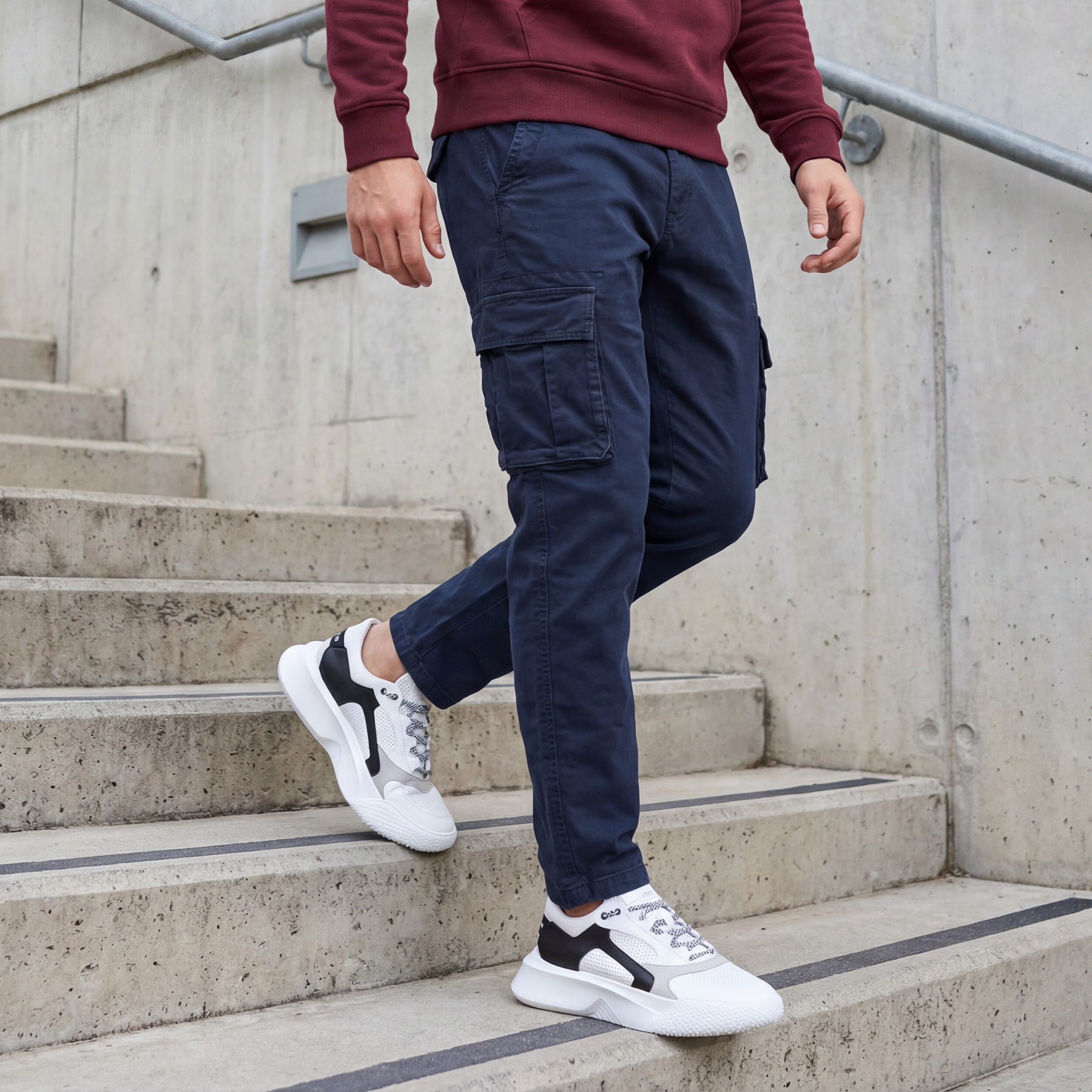 Ανδρικό παντελόνι cargo από μαλακό ύφασμα με πλαϊνές τσέπες για casual εμφανίσεις.