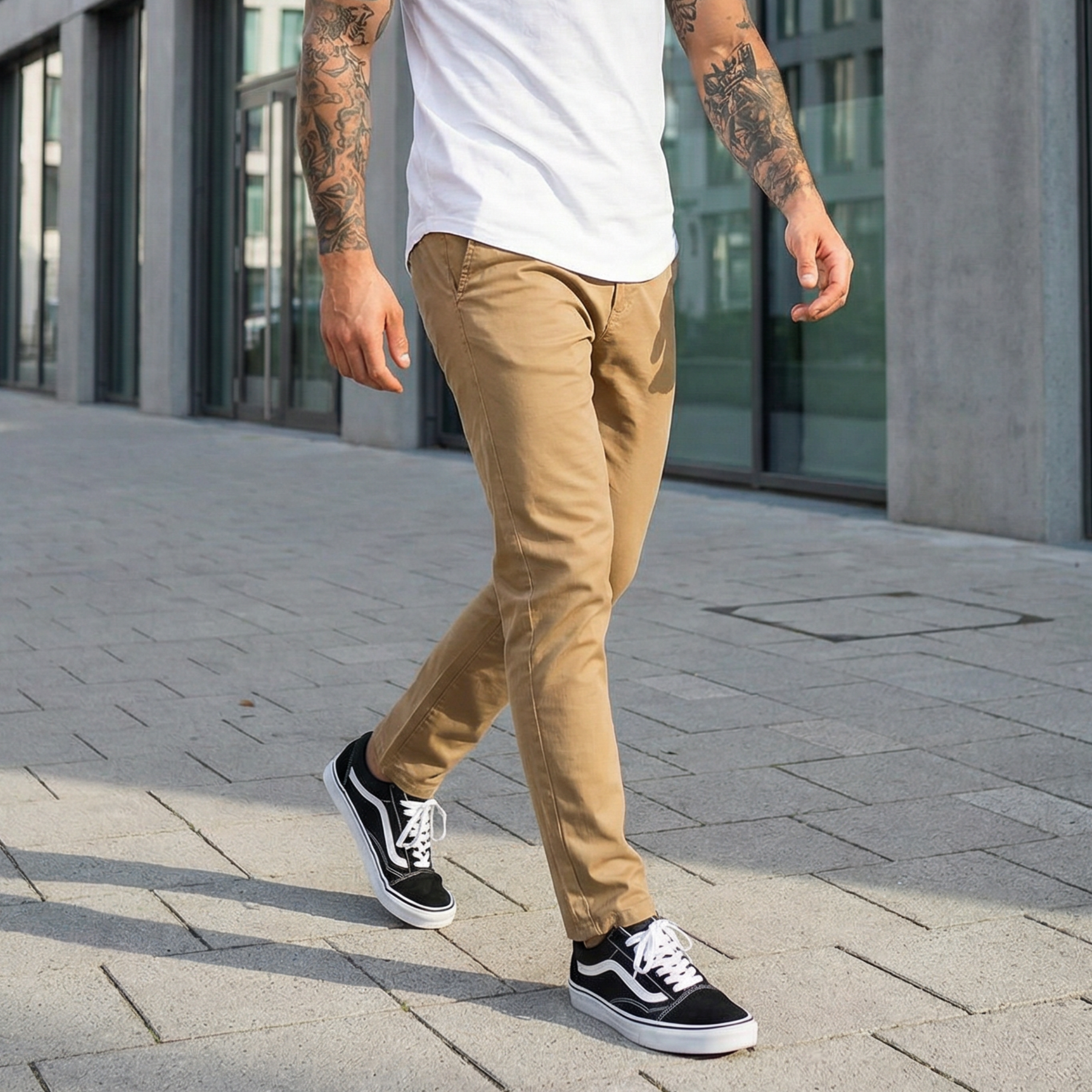 Ανδρικό καλοκαιρινό chino παντελόνι από μαλακό ύφασμα για casual εμφανίσεις.