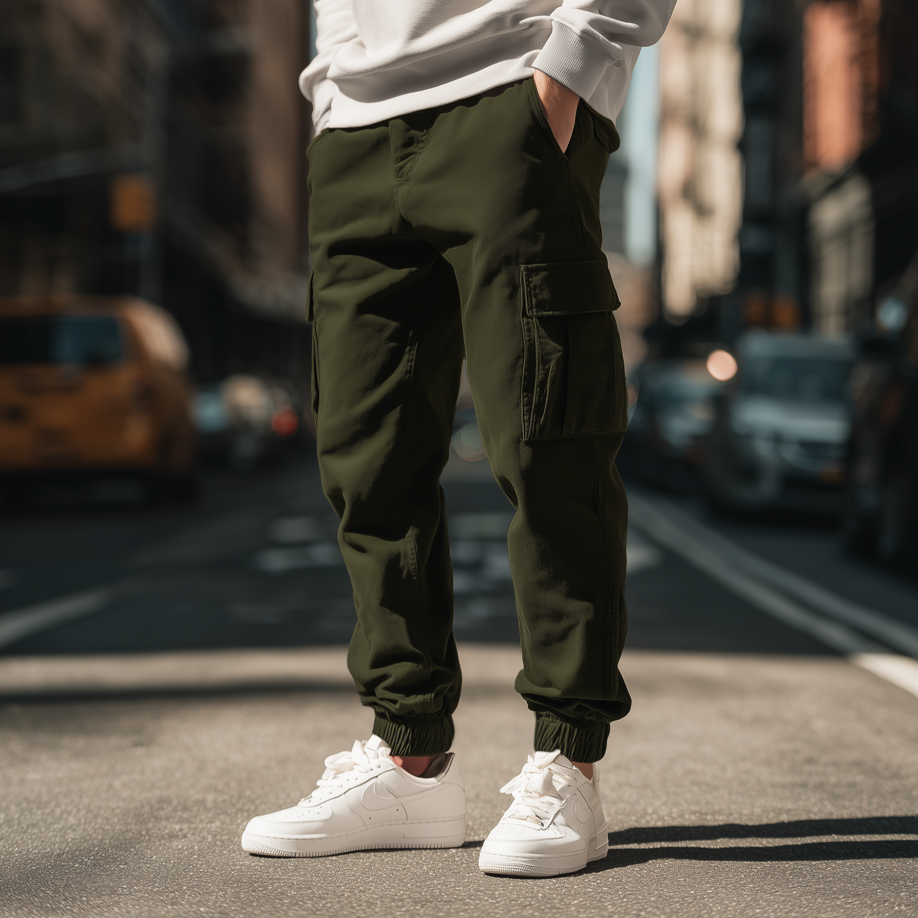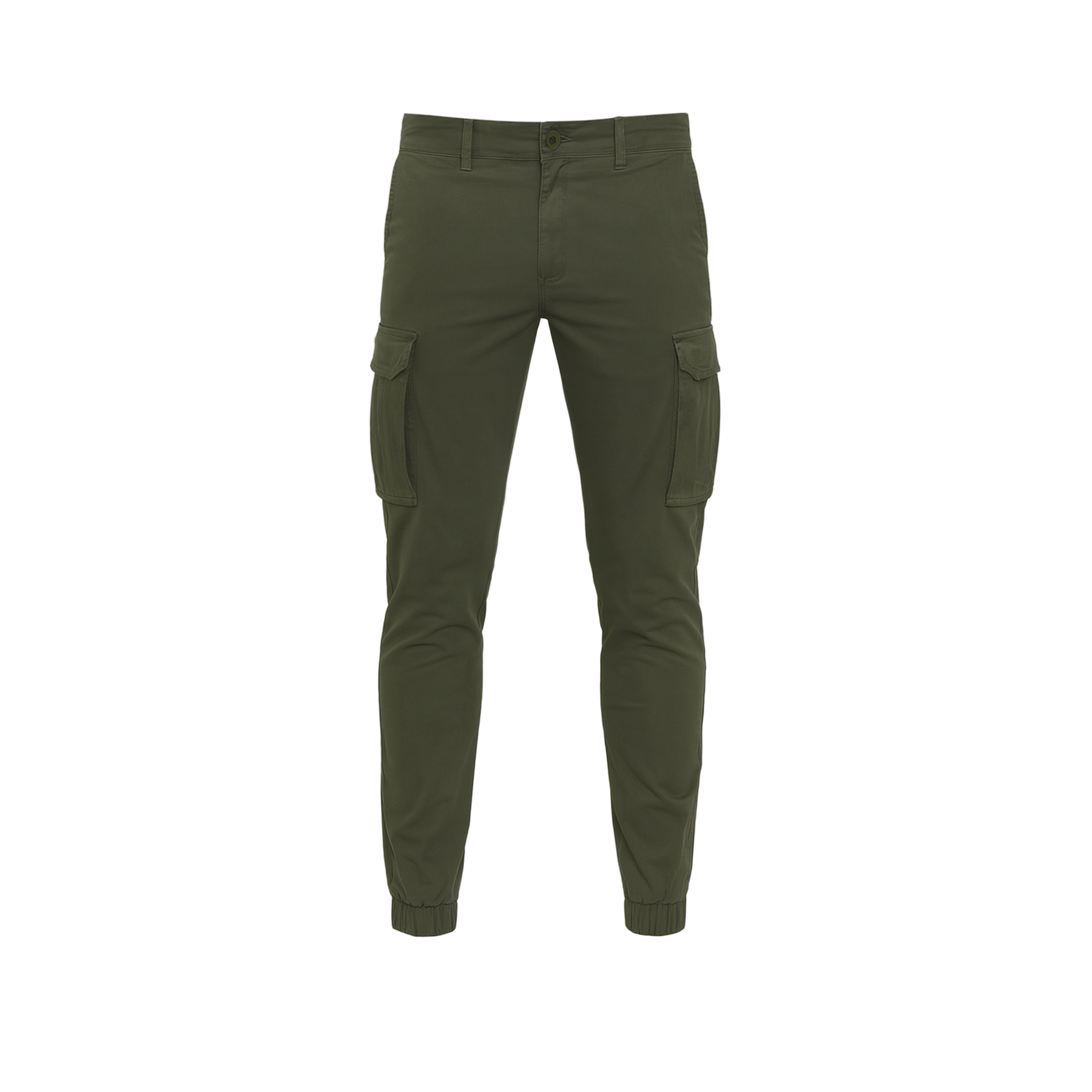 Ανδρικό παντελόνι cargo από μαλακό ύφασμα με πλαϊνές τσέπες για casual εμφανίσεις και λάστιχο στους αστραγάλους.