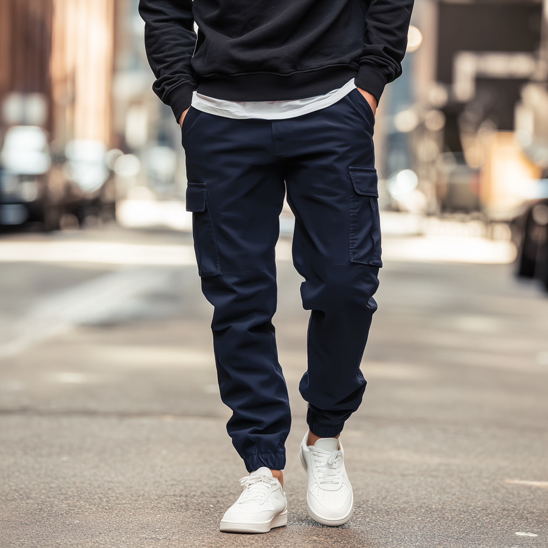 Ανδρικό παντελόνι cargo από μαλακό ύφασμα με πλαϊνές τσέπες για casual εμφανίσεις και λάστιχο στους αστραγάλους.