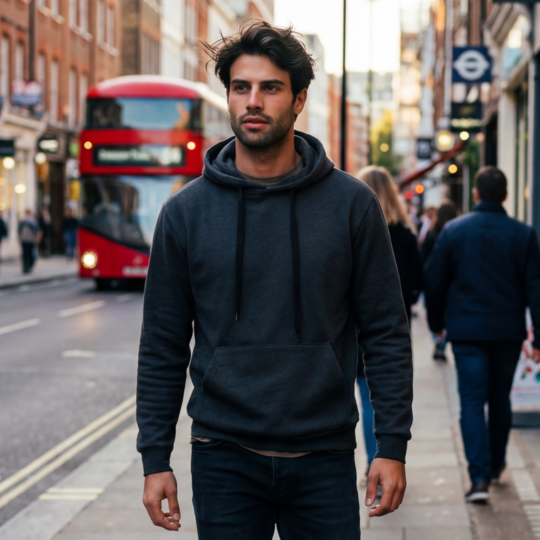 Ανδρικό Φούτερ με Κουκούλα Σκούρο Γκρι