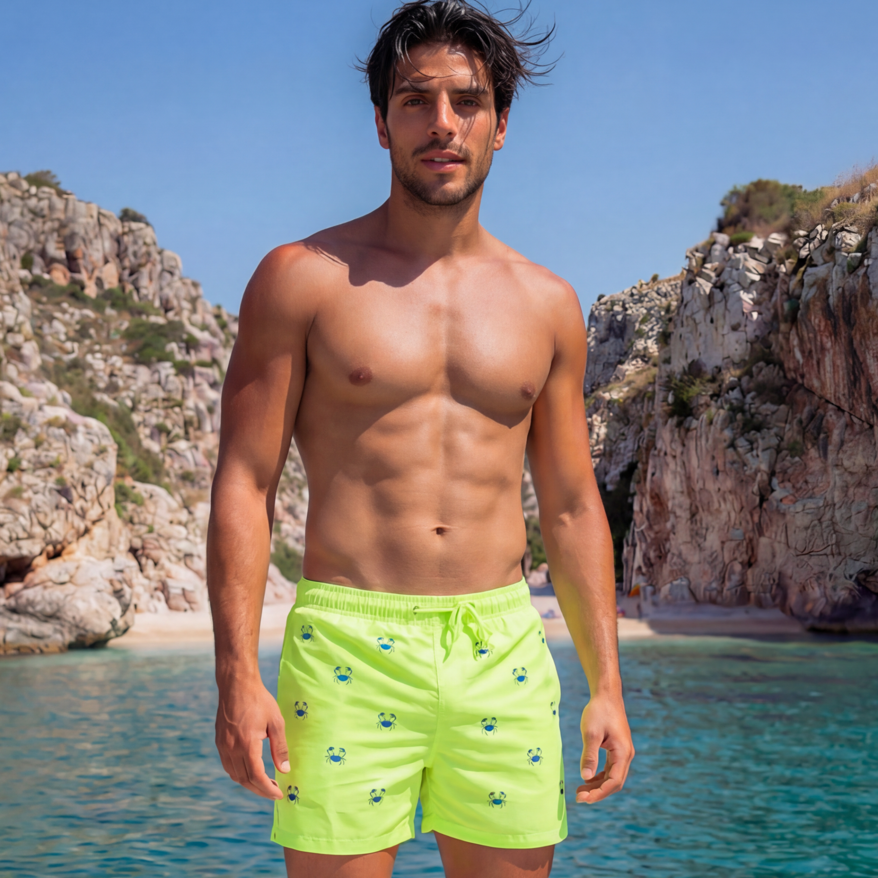 Ανδρικό μαγιό σε στυλ σορτς , ιδανική επιλογή για το καλοκαίρι.